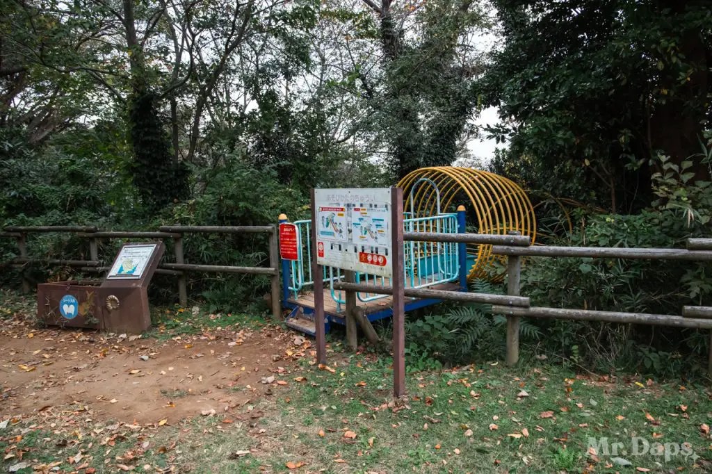 それがどれだけ違うのかについての最初の手がかりは、この滑り台を見つけるために山に登ったときに得られました。 それは、遊び場で遊んでいた子供たちがジップラインのある公園に初めて来た後のことでした。 それから山に登る時が来ました。 日本でよくあることですが、小さな山への短い旅行ではありません。 それは森の中を轟音を立てて駆け抜け、非常に高く上がっていった。 幸いなことに今回は階段はありませんでした。 確かにそうかもしれません。 ようやくゲレンデエリアに到着しました。 そこにはボーイスカウトのクラブハウスか何かを思わせる建物がありました。 大きな海賊船に似たドラマチックなセットもありました。 何度か滑り台に乗った後、子供たちは滑り台の周りを登るのが大好きでした。 桟橋を降りると滑り台の入り口がありました。
